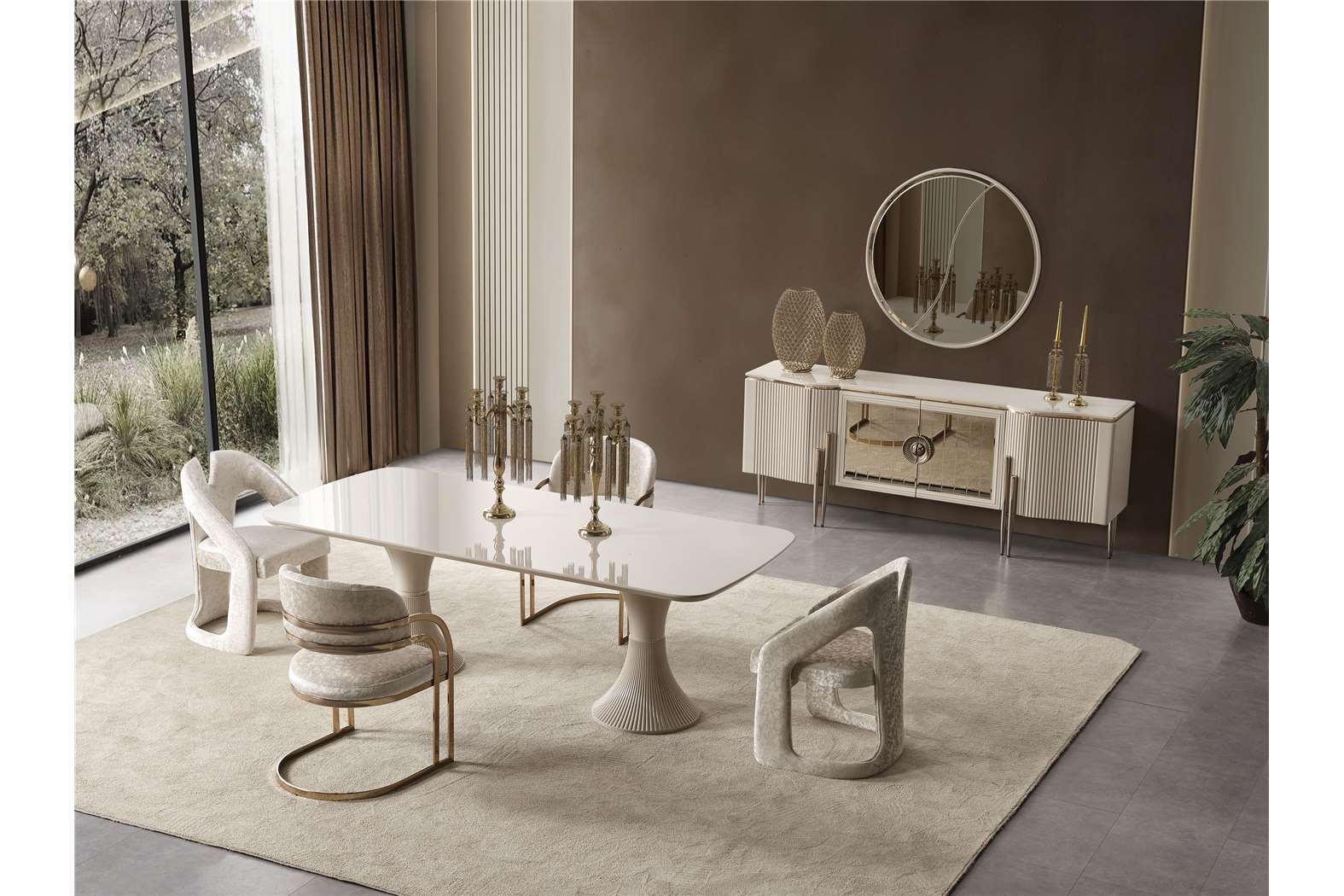 Yıldız Yemek Odası, modern çizgileri ve özenle tasarlanmış detaylarıyla davet sofralarınızı özel kılar. Kaliteli malzeme yapısı, sağlam gövdesi ve fonksiyonel depolama alanlarıyla uzun ömürlü ve kullanışlı bir deneyim sunar. Şıklık ve konforu bir arada sunan bu takım, sofralarınızı keyifli ve unutulmaz anlara dönüştürür.
